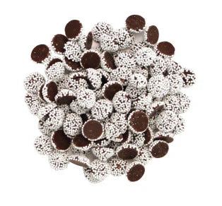 Step into the spotlight with Sno Caps, the bite-sized chocolate treats that have been stealing the show since forever! Each morsel is a smooth, semi-sweet chocolate drop wearing a dazzling coat of crunchy white nonpareils—like tiny snowflakes ready for their close-up.